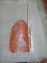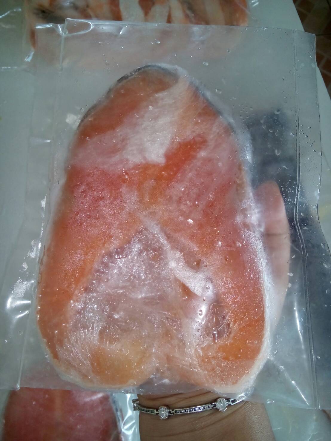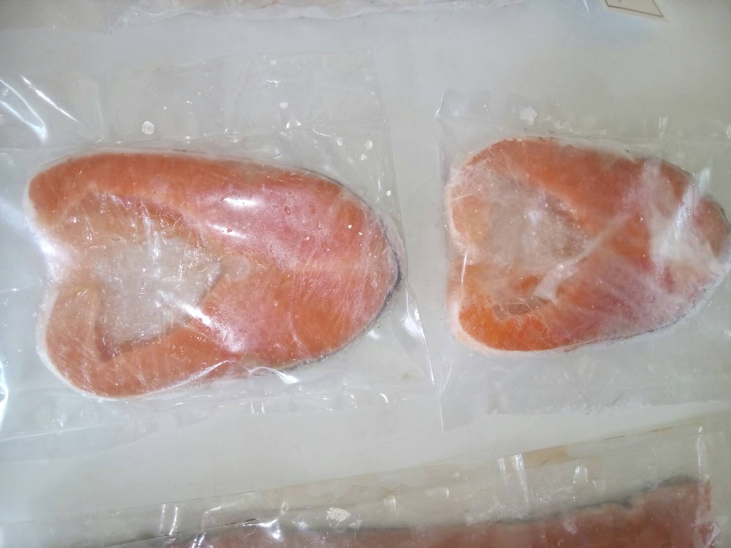 เนื้อปลาแซลม่อนแล่ติดหนังหั่นชิ้น