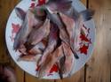 เนื้อปลาแซลม่อนแล่ติดหนังหั่นชิ้น