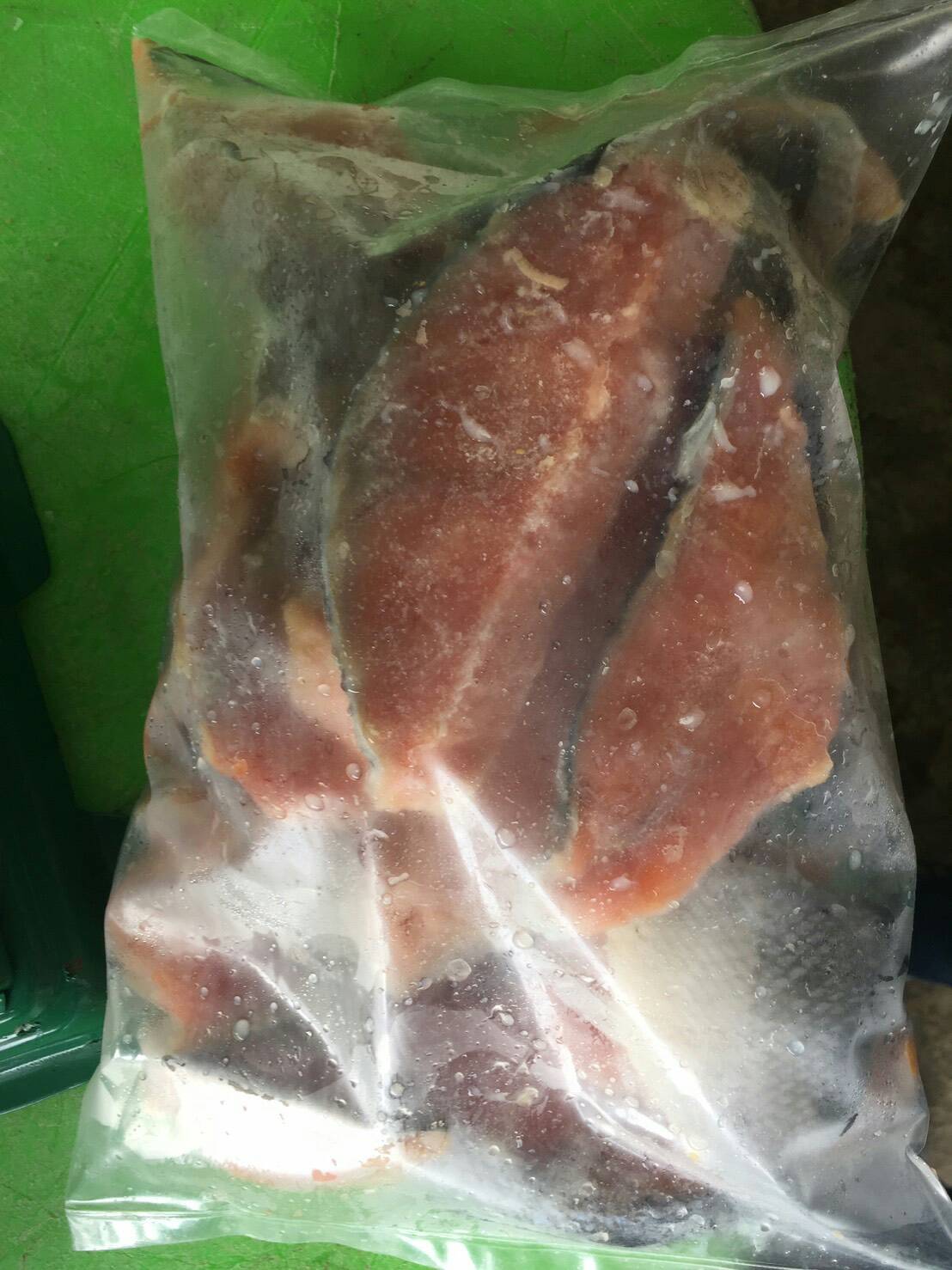 เนื้อปลาแซลม่อนแล่ติดหนังหั่นชิ้น